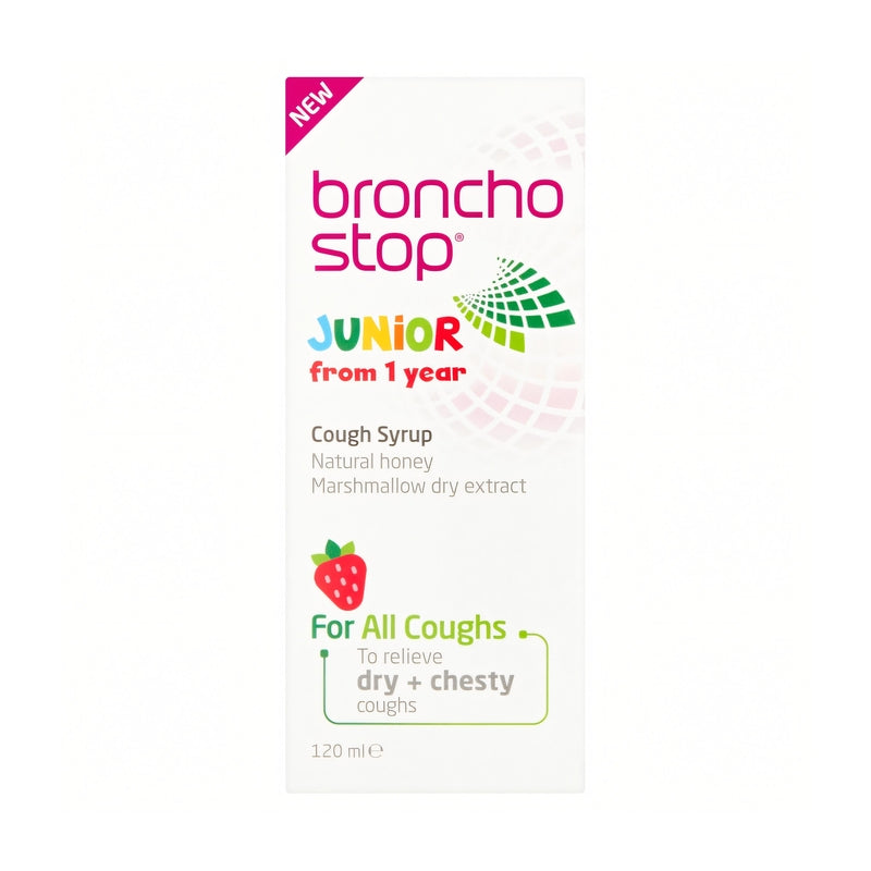 - Bronchostop Junior Syrup is usually well tolerated but potential side effects may include allergic reactions, skin rash, or gastrointestinal disorders like nausea, vomiting, or diarrhea. If any of these symptoms occur, discontinue use and consult a healthcare provider. Children under 2 years should not use this medication unless prescribed by a doctor. As with all medications, use with caution if your child has any pre-existing health conditions, or if they are taking any other medication. Never exceed the recommended dosage.