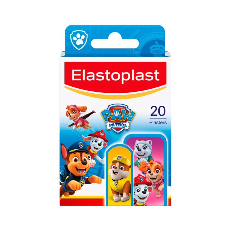 - The Elastoplast Kid's Paw Patrol Plasters don't have 'ingredients' as such like food items or beauty products. However, the main components usually include: a breathable and flexible fabric, a latex-free adhesive, a non-stick wound pad, and printed patterns of Paw Patrol characters.