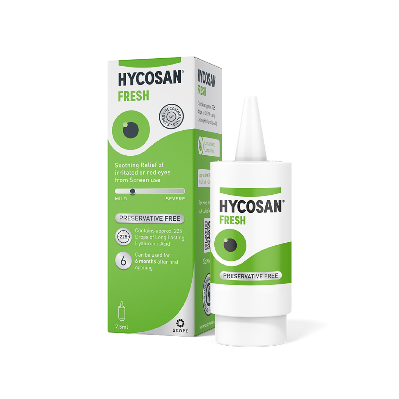 Experience immediate relief from red, itchy eyes and screen fatigue with Hycosan Fresh. These refreshing eye drops are specially formulated to soothe and hydrate your eyes, providing long-lasting comfort. Perfect for those spending extended hours in front of screens, Hycosan Fresh eye drops are a must-have for digital professionals and anyone seeking relief from environmental irritants.