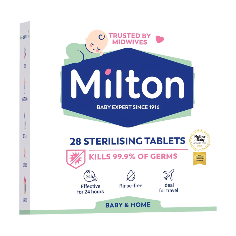 Easily ensure the hygiene of your baby's feeding accessories with Milton Sterilising Tablets. Drop one in water to create a solution that kills 99.9% of germs. Trust in Milton for a quick, fuss-free sterilization method that's been loved by parents for years.