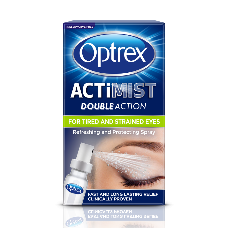 Experience the refreshing relief of Optrex Actimist Double Action for Tired and Strained Eyes. Designed to rejuvenate and soothe, this spray helps restore your eyes' natural balance. Combat eye fatigue and strain with just a simple application. See the world with renewed clarity and comfort.