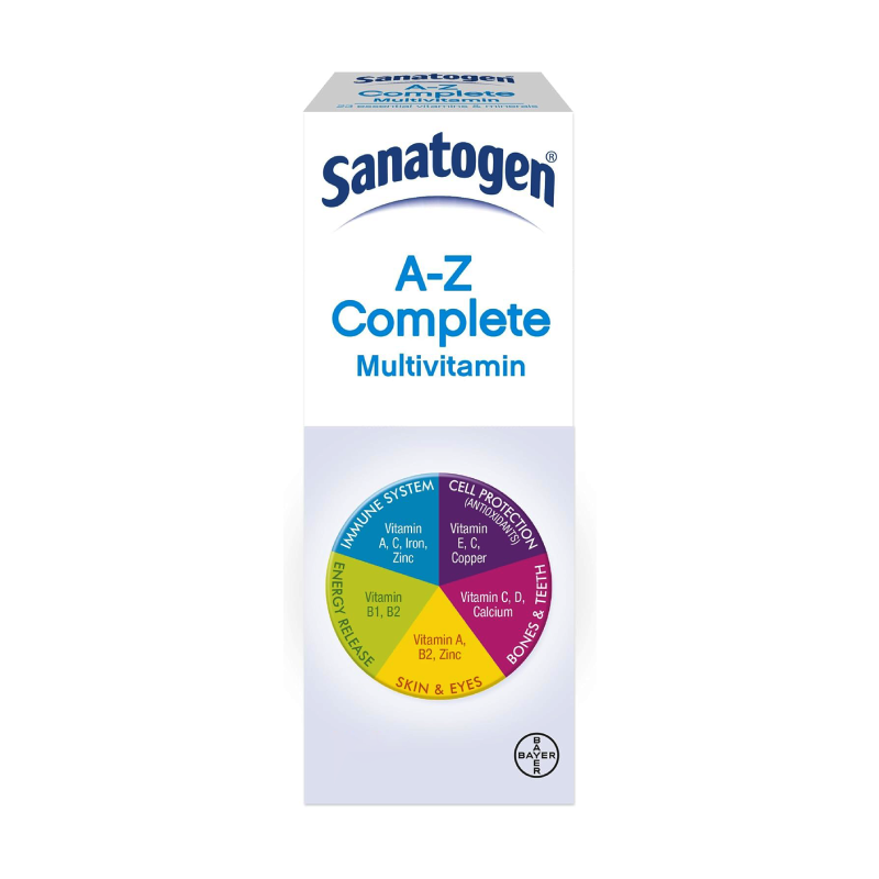 - Sanatogen A-Z Complete Multivitamin Tablets should be taken orally. Adults, including the elderly and teenagers (12 years and above) are advised to take one tablet daily with food, preferably with a main meal. Do not exceed the recommended daily dose. Always consume the tablet with a full glass of water. These tablets are not suitable for children under 12. Ensure to read the product packaging and labels before use.