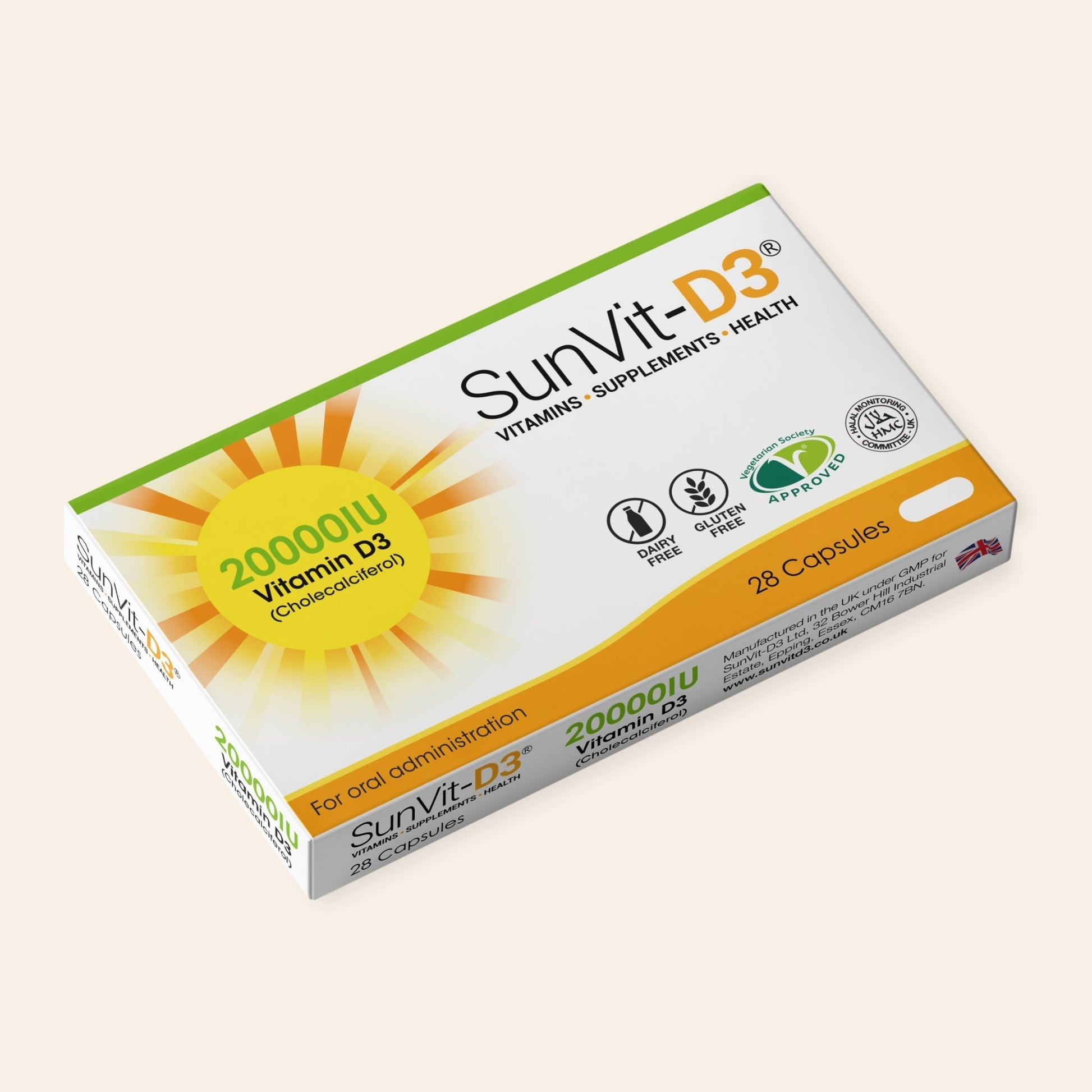Our D3 capsules meet UK GMP standards and are certified vegetarian, halal, dairy-free, and gluten-free, ensuring high-quality and ethical sourcing. With minimal binding ingredients and a design that facilitates easy swallowing, these capsules are the perfect choice to meet your nutritional needs.