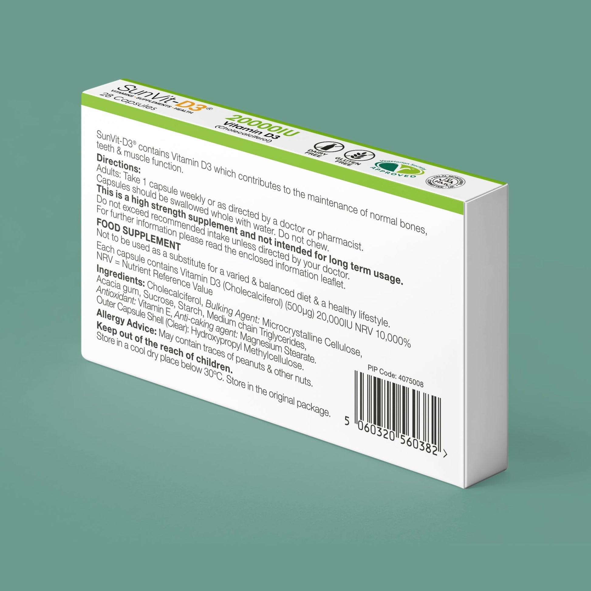 SunVit Vitamin D3 20,000IU 28 High Strength Weekly Capsules