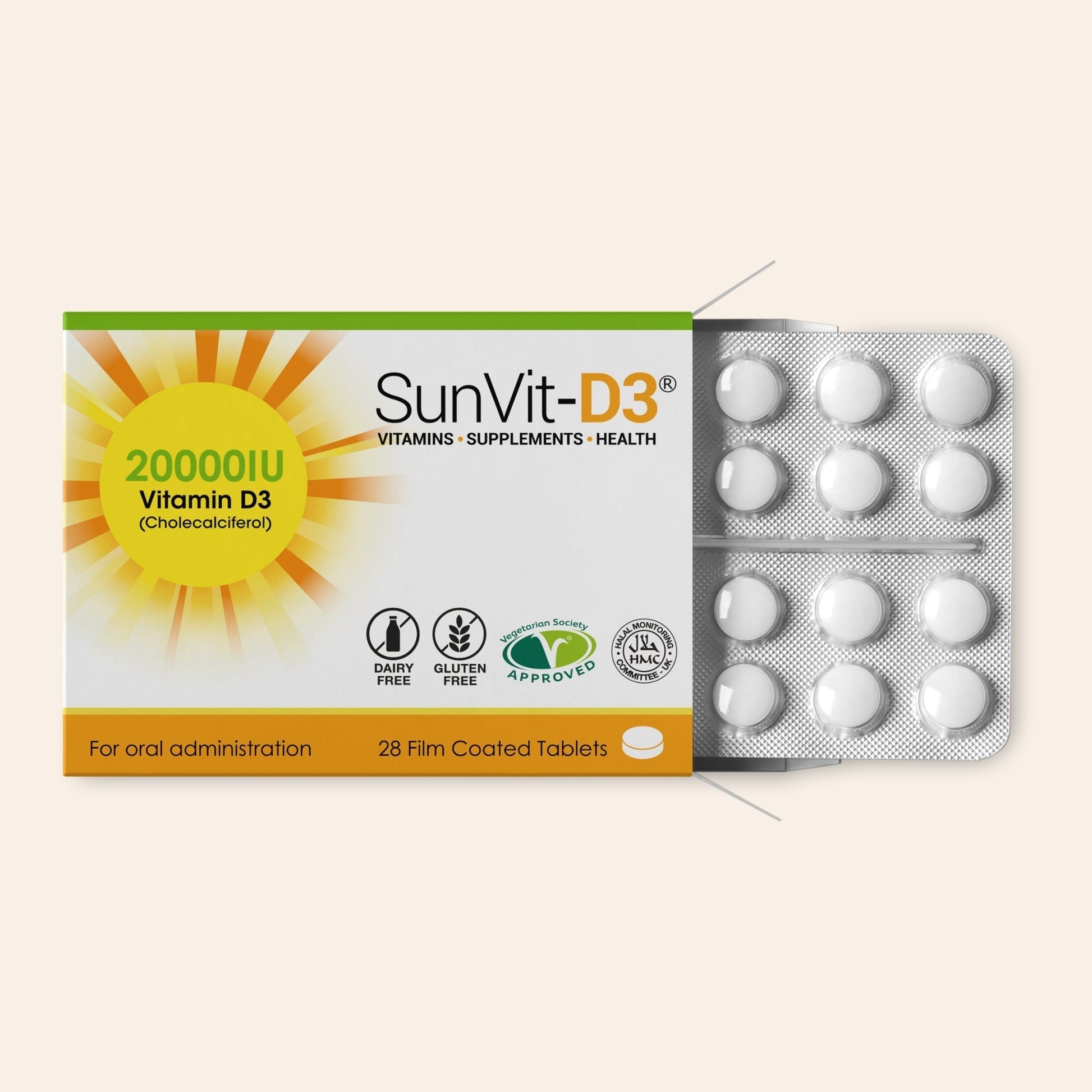 SunVit Vitamin D3 20,000IU 28 High Strength Weekly Tablets