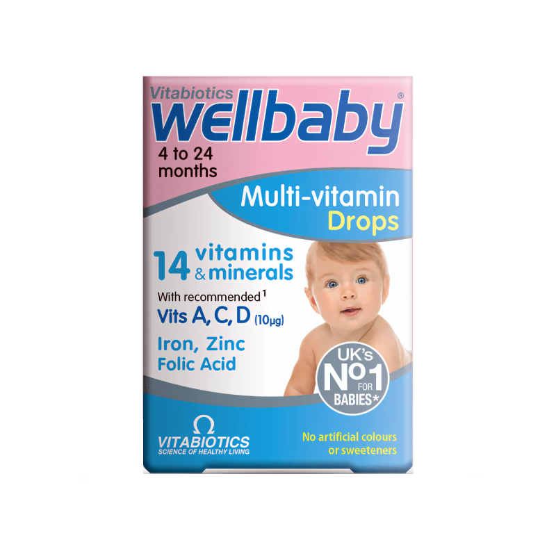 Wellbaby Multi-vitamin Drops provide a balanced formula to support your baby's nutritional needs from 4 to 24 months. Containing essential vitamins A, C, and D, as recommended by the UK Department of Health, these drops also include iron, which is crucial for normal cognitive development in children. This gentle formula is an excellent way to ensure your baby receives vital nutrients during their early months.